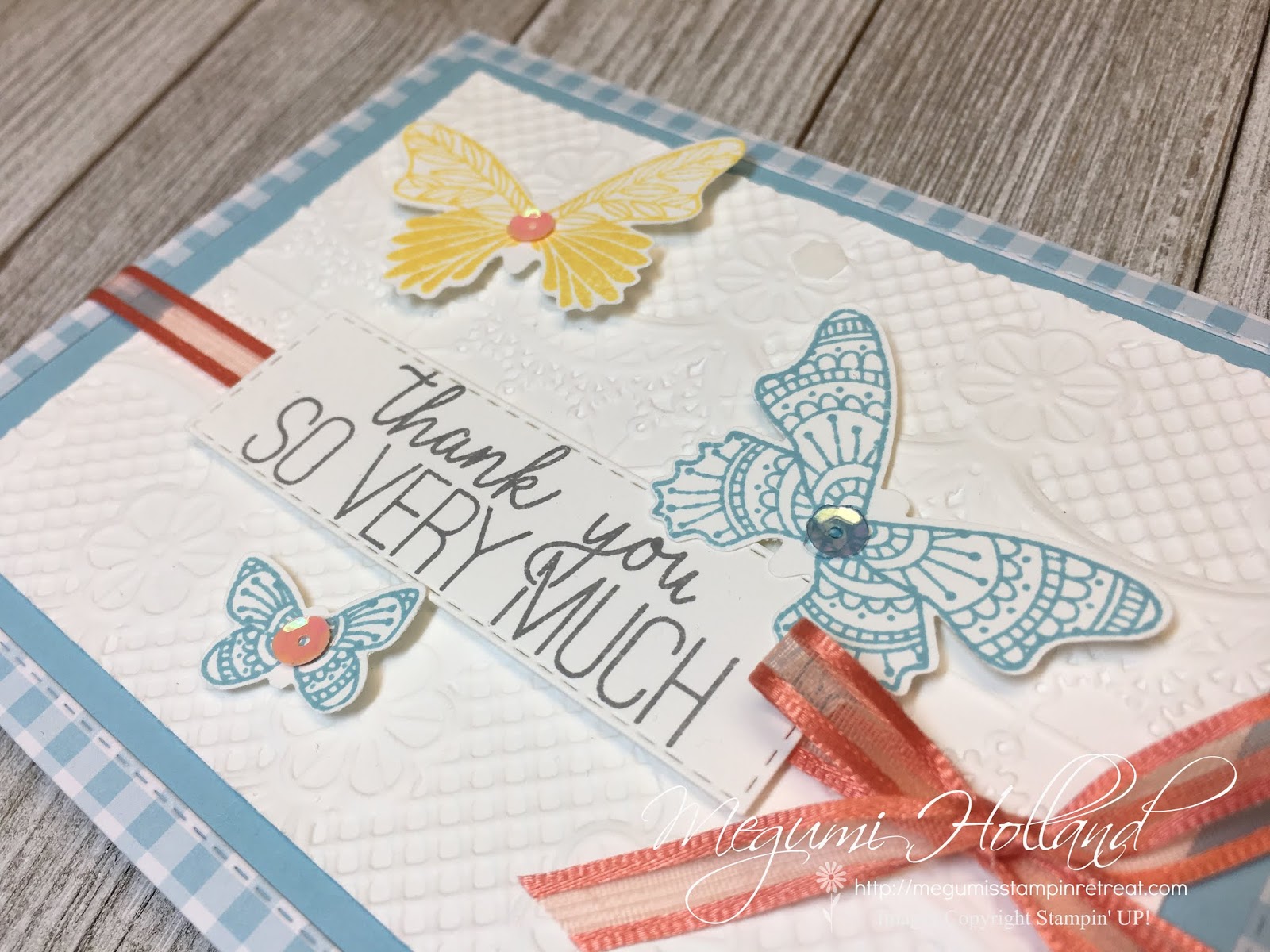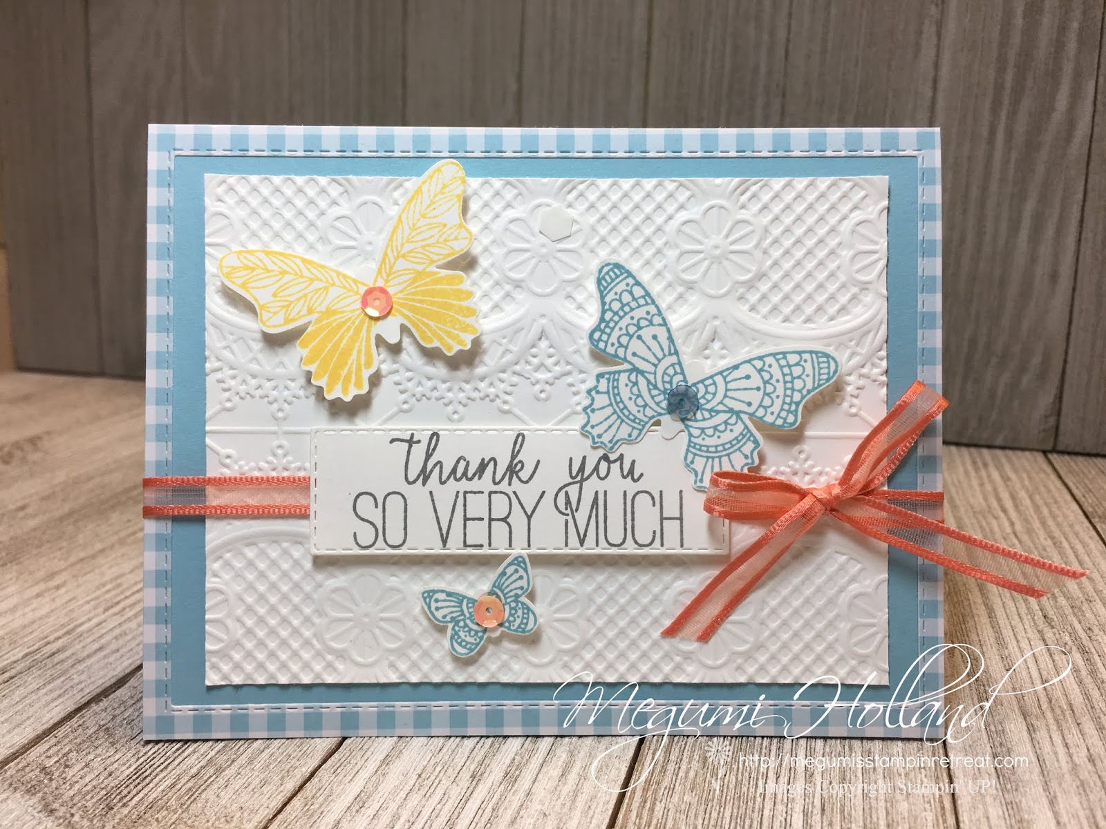 How about the new Butterfly Gala Stamp Set? To be honest with you it took me some effort to convince myself why I needed another butterfly stamp set:-). But I’m glad that I got it along with the Butterfly Duet Punch. Possibilities are endless with the stamp set and having the punch makes it so easy to punch them out. Did you know the Butterfly Duet Punch coordinates with the gorgeous Botanical Butterfly Designer Series Paper which is featured in the Sale-A-Bration Brochure this year? It is absolutely pretty!!!