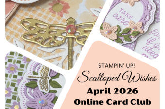 Happy April everyone! It’s time for a new card kit. This month I chose the Scalloped Wishes Bundle from the Online Exclusives Collection. It’s a beautiful set of scalloped images/shapes…