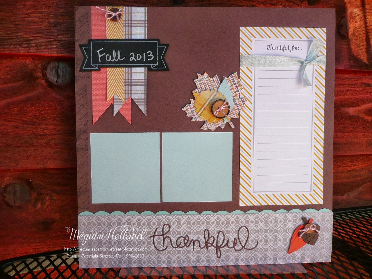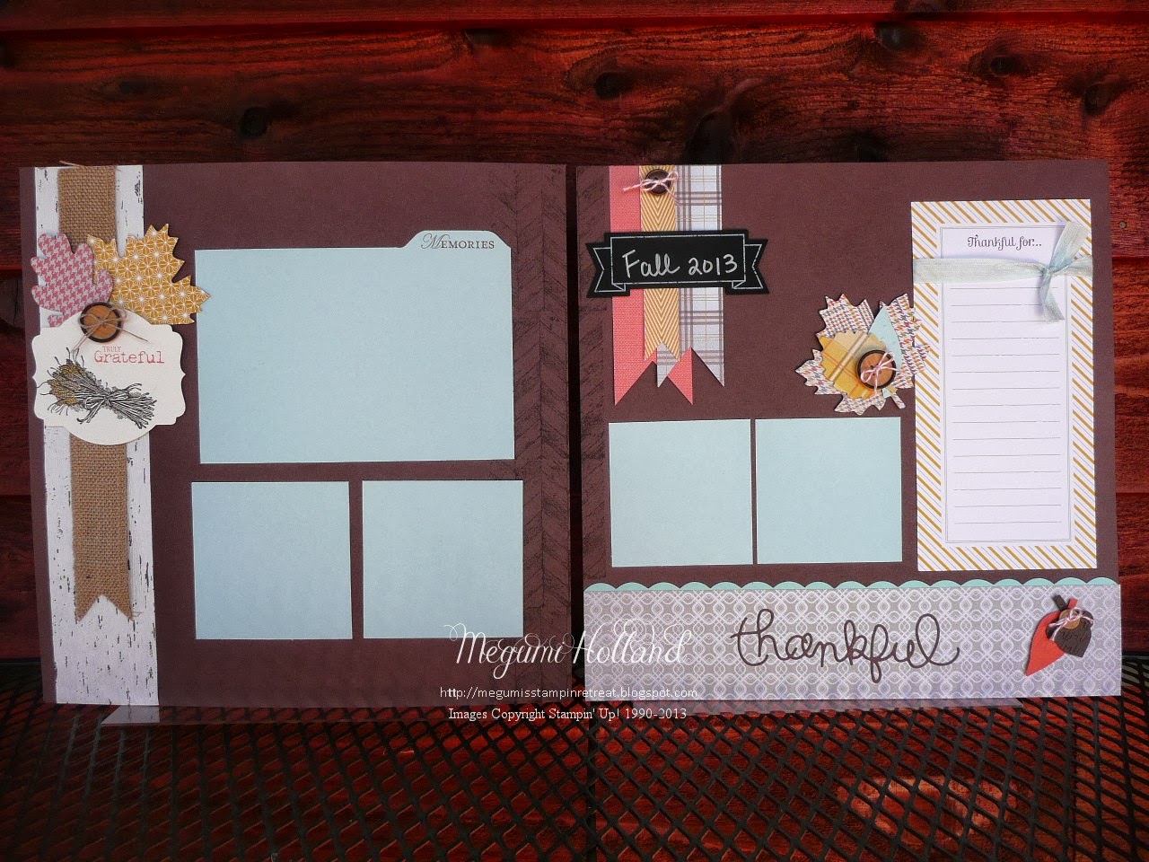 Happy Monday! Here is my project we made in my Scrapbook Club this month. I designed this two 12″ x 12″ layout using the Truly Grateful Stamp Set and Thankful Tablescape Simply Created Kit in the Holiday Catalog.